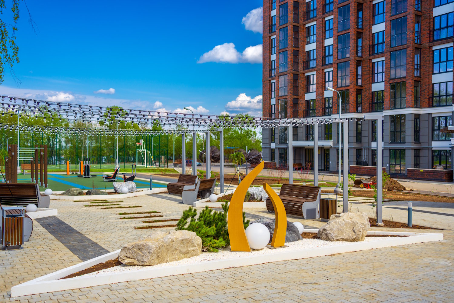- Современный двор-парк в эко-стиле премиум-класса по индивидуальному проект
