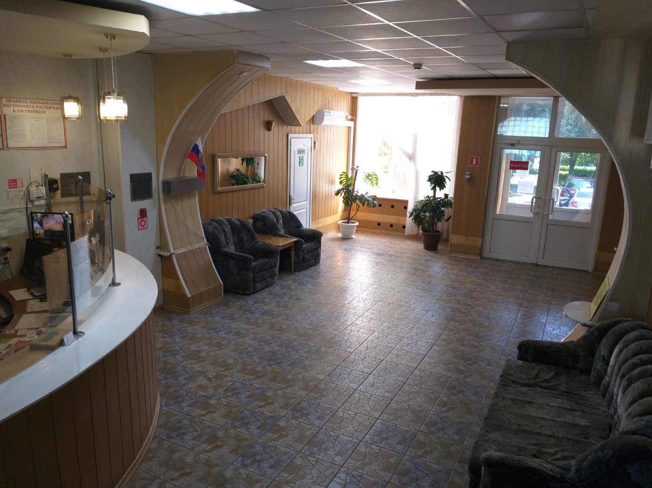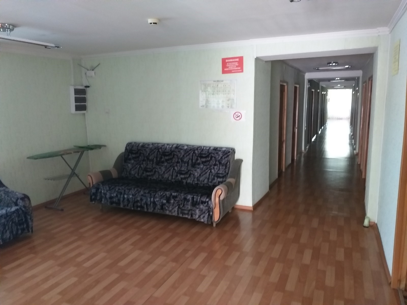 В здании был расположен гостиничный комплекс ,который включал в себя гостиницу 1 категории "Без звезд" и кафе.